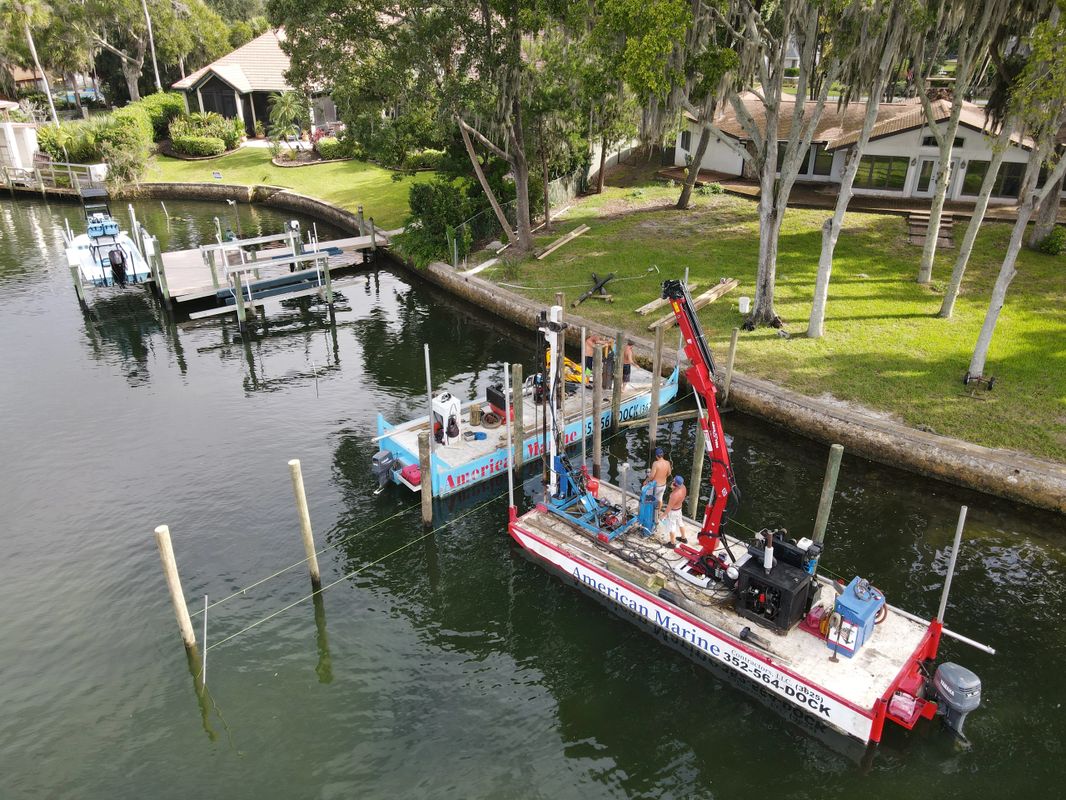 Full Service Marine Construction Support American Marine Corporation has been working in the marine construction industry since the 1970s. AMERICAN MARINE CONSTRUCTION INC. American Marine Contractors is your licensed and insured deck and dock builder in Inverness Dunnellon Crystal River Homosassa and Homosassa Springs.